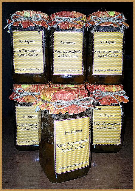 Aslında daha büyük parçalar halinde yapılır kabak tatlısı. Ben kavanozlarda daha uzun ömürlü saklayabilmek için hem de kahvaltılarda reçel yerine de tüketebilmek için küçük parçalar halinde hazırladım. Arzu ederseniz tanelerini suyundan süzüp kahve yanında lokum olarakta sunabilirsiniz. En kısa süre de çikolataya batırılmış lokum halindeki görselini de paylaşacağım. Afiyet Olsun...